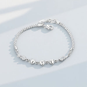 Stylish Silver-Plated Minimalist Heart-and-Feather Bracelet For Women.